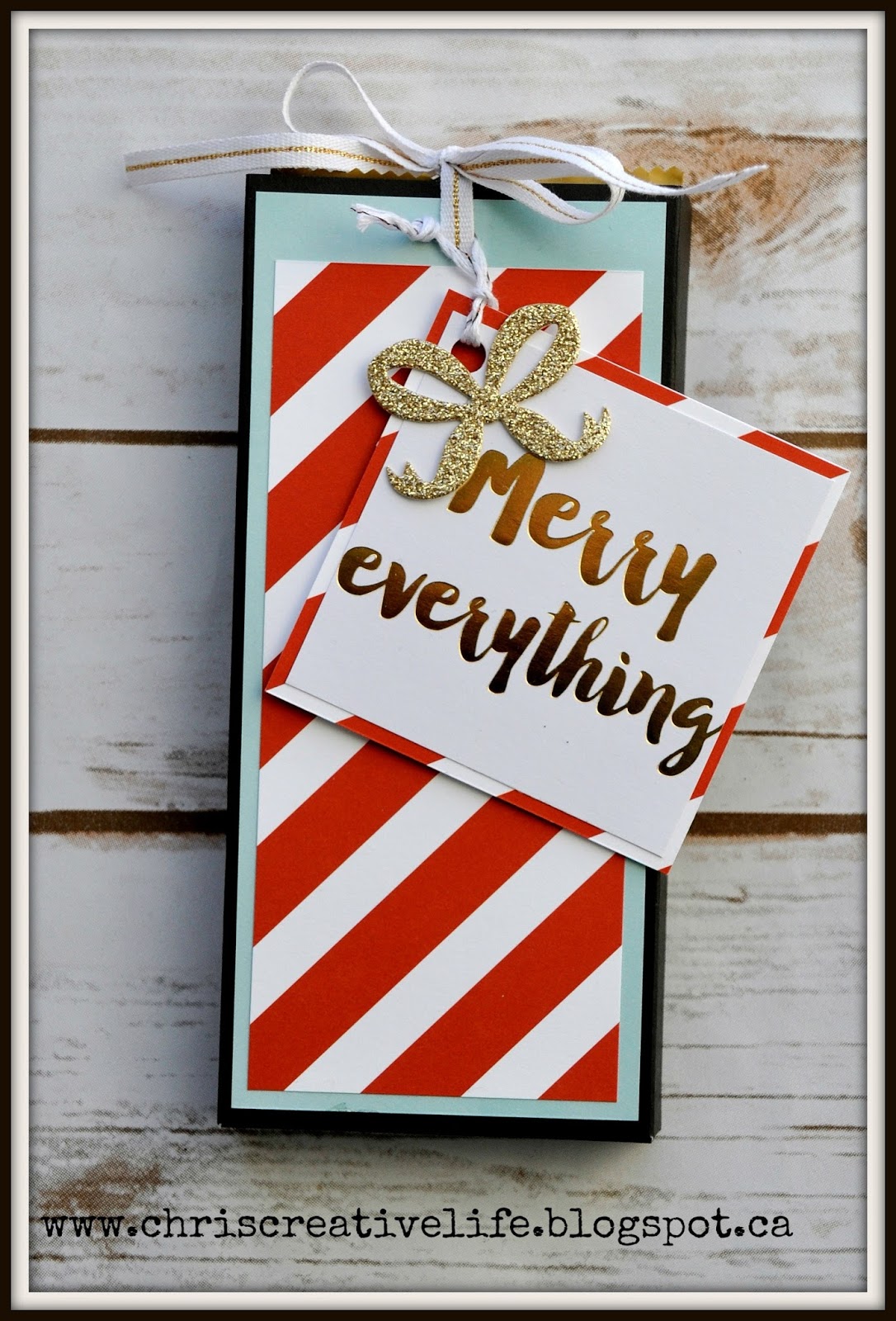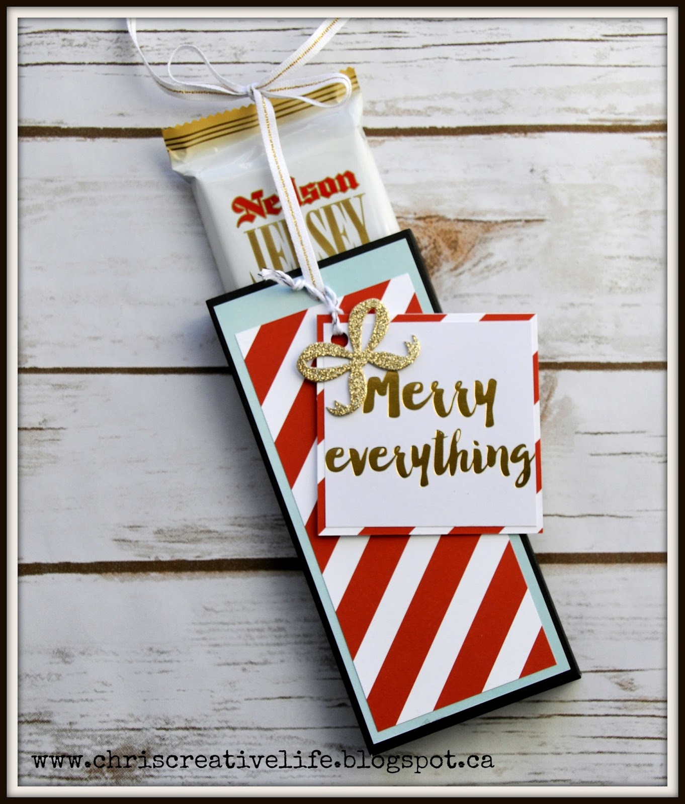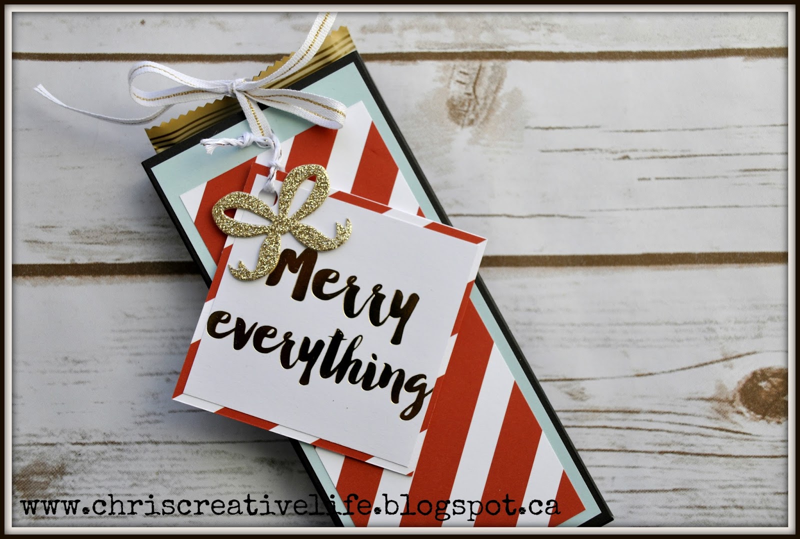 Welcome to the 11th Day of Inspiration, this is a fun little chocolate bar with a fun interactive wrap! You pull on the ribbon to expose the chocolate bar wrapped inside.
