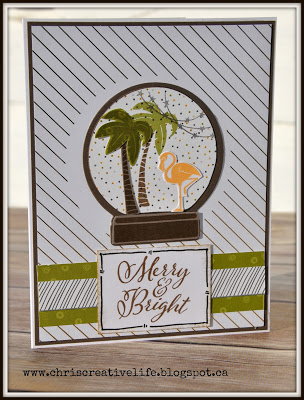 This card has a completely different feel that the other card that I shared. I thought the paper from Falling for You resembled the “snow” of the snow globe.