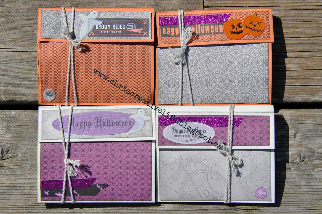 This is such a cute workshop…I wanted it to be different not just a straight Halloween themed workshop. The workshop is designed with two layouts that are Halloween themed and two generic layouts, plus four special treat bags for a few of those extra special Trick Or Treat-ers!