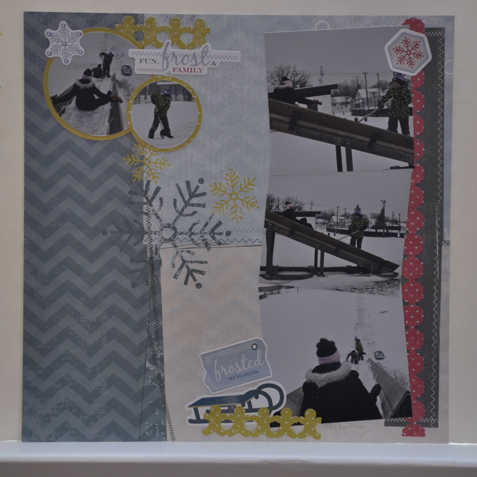 This is a fun Christmas page. I used three different border punches. That is one of my most