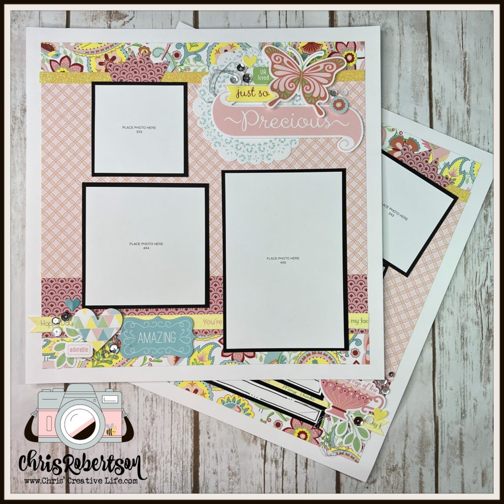 I have to say…I love when Close to My Heart does a new Bring Pack my Pack collection! The reason is for the most part I was not around creating workshops for the first release. It is so much fun for me to get to play with an updated collection that I have not had a chance to create with before. Chantilly-Bring Back my Pack was such a fun collection to cut up and turn into these layouts.