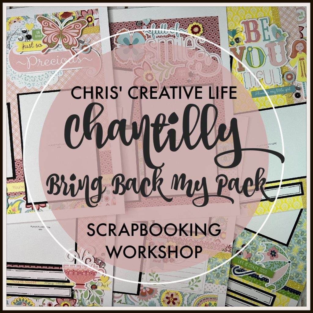 Here is the supply list for the Chantilly- Bring Back my Pack Scrapbooking workshop-