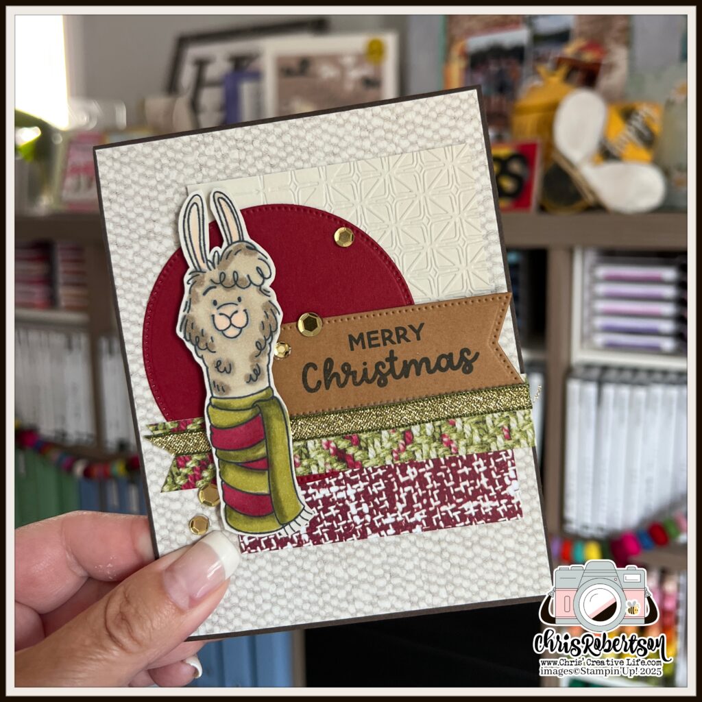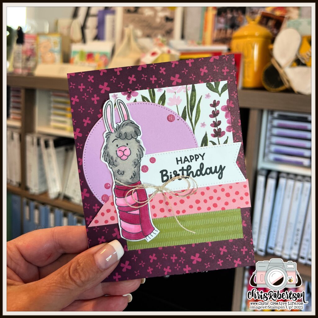 Because even llamas love a good party! 🥳 I couldn’t resist giving this design a birthday twist—and just like that, it went from “Merry & Bright” to “Let’s Celebrate!” It’s amazing how a quick sentiment swap and a pop of colour can take this card from Christmas to year-round cheer.
