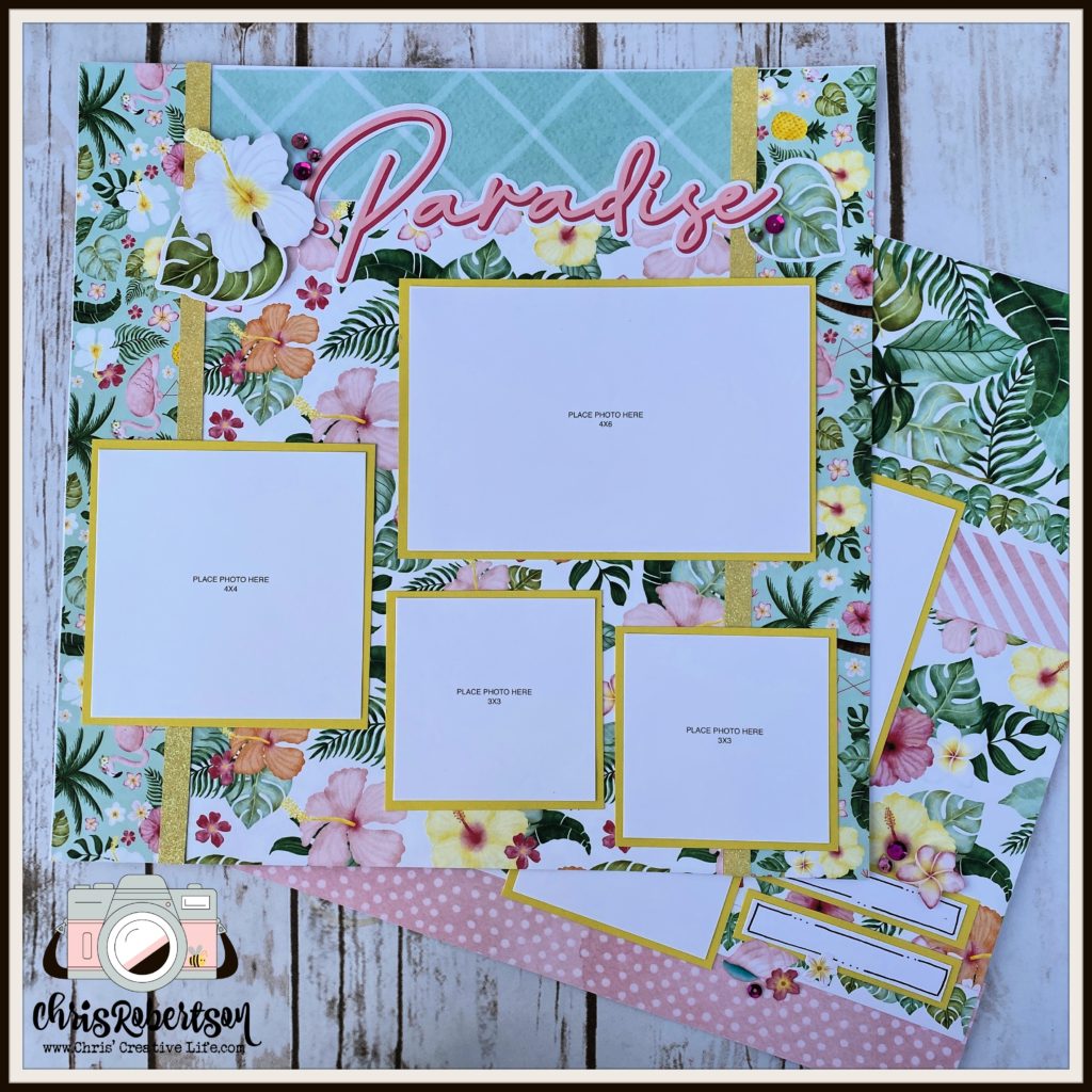 The Deck the Palms collection has such a fun theme to it! Have you had a chance to check it out? The Deck the Palms collection has a tropical theme on one side of the papers and the other side is a Holiday Tropical theme. I decided to stick with the tropical feeling for this workshop but if you have Holiday Tropical pictures you could easily switch the side of the paper to reflect your holiday on your layouts. I really feel like I have been saying this on repeat but I love the colors in this collection and feel like they are a perfect compliment for your tropical photos. Let’s take a look at what I have created!