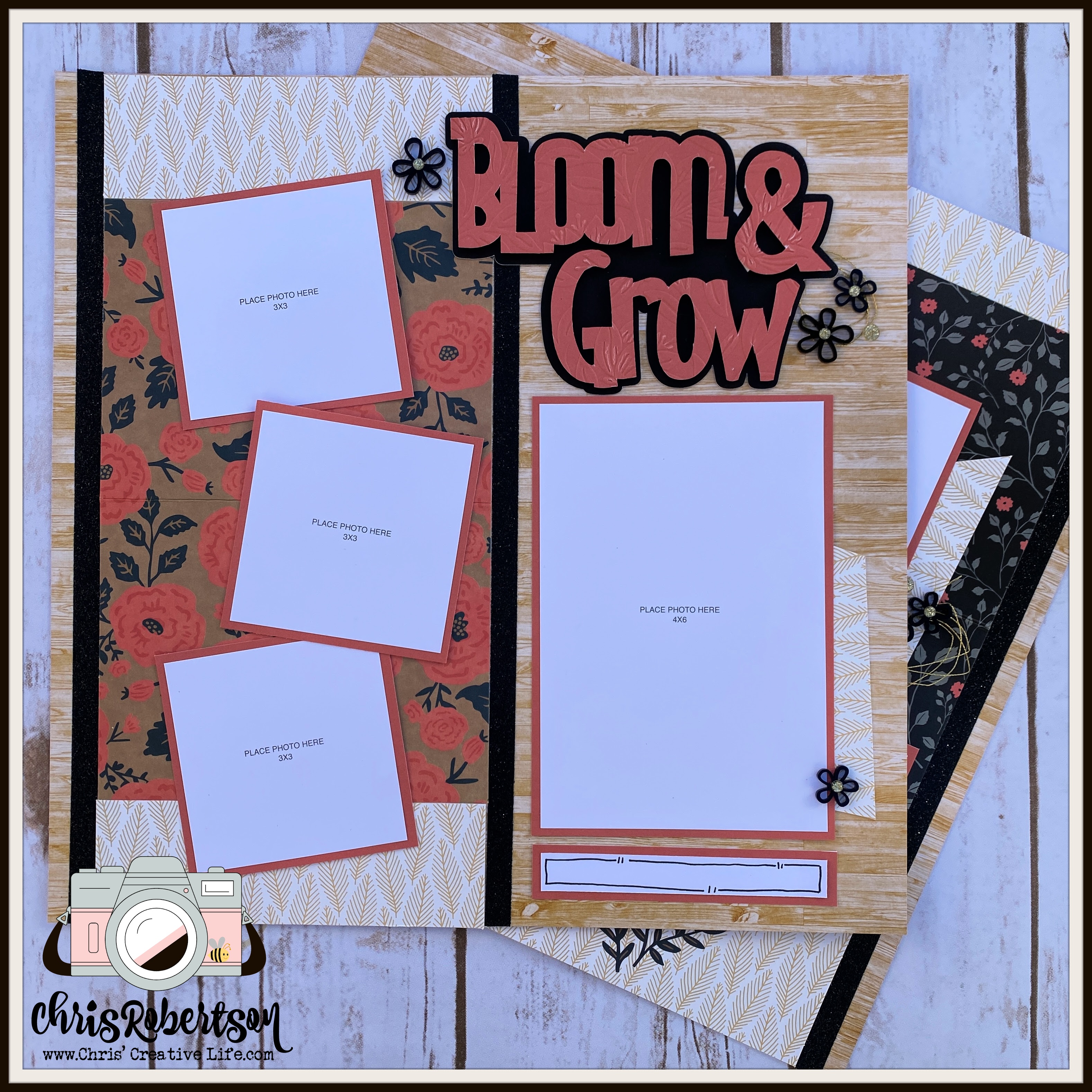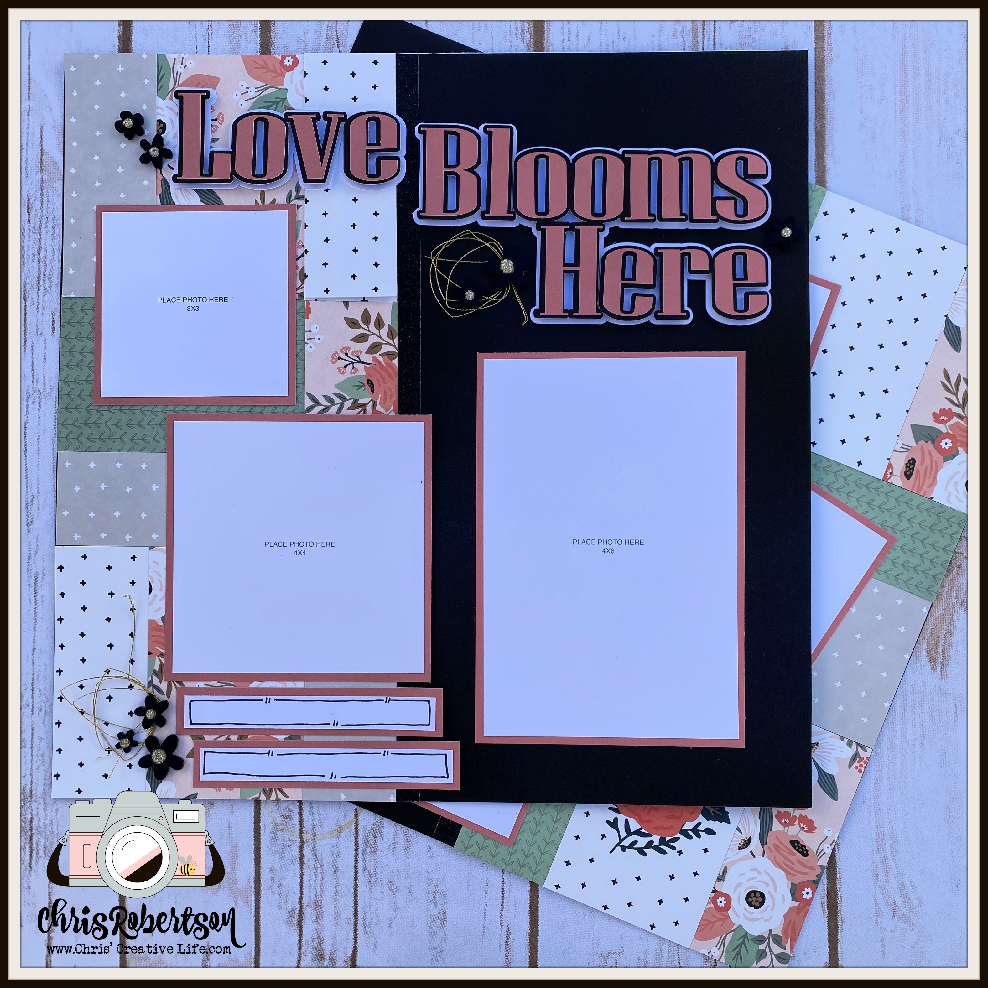 Have you seen the super cute Flower Shop Card Kit that is available to VIP’s through Close to My Heart? It is darling and you might want to order more than 1, these make a wonderful gift. But I had another idea in mind when I saw the cards…let make scrapbooking layouts! The Flower Shop (alternative) workshop was definitely a challenge to create but I have to say I love the scrapbooking layouts that are the end result. Are you ready to see what I created?