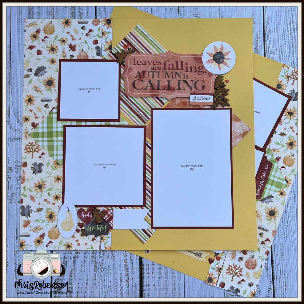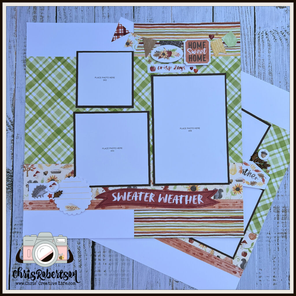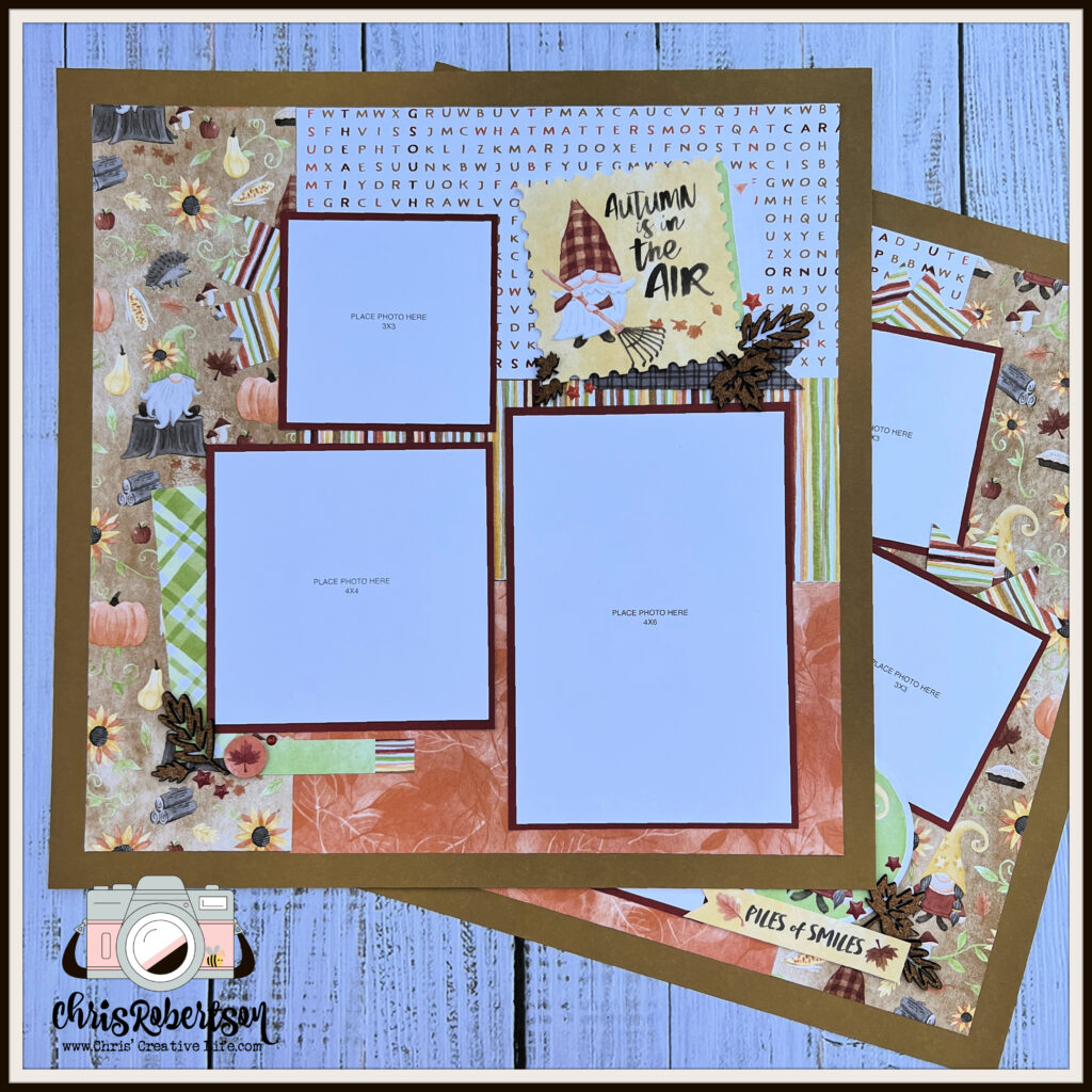 The workshop creates- (8) 12×12 scrapbook pages.
