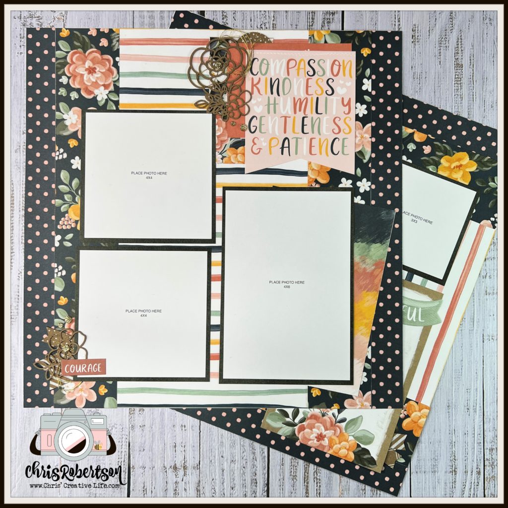 During the month of May, Close to My Heart celebrates what they call, National Scrapbooking Month. This year the collection they are releasing for NSM is called Hope & Kindness. This collection is full of wonderful sentiments and beautiful colors. This collection is a lovely combination of kraft and florals. They also did something we have not seen in awhile with a few cut apart sheets. I hope you enjoy what I have created with this special collection.