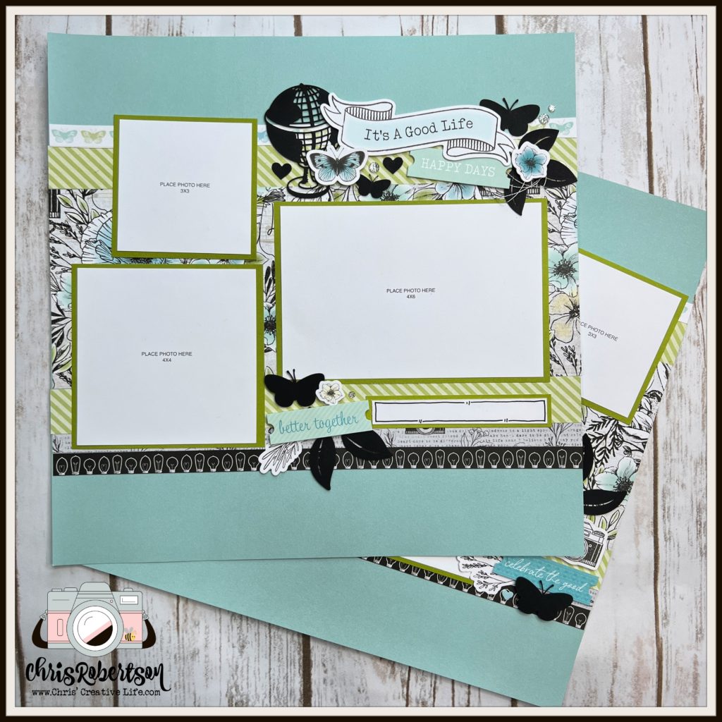 The workshop creates- (8) 12×12 scrapbook pages.