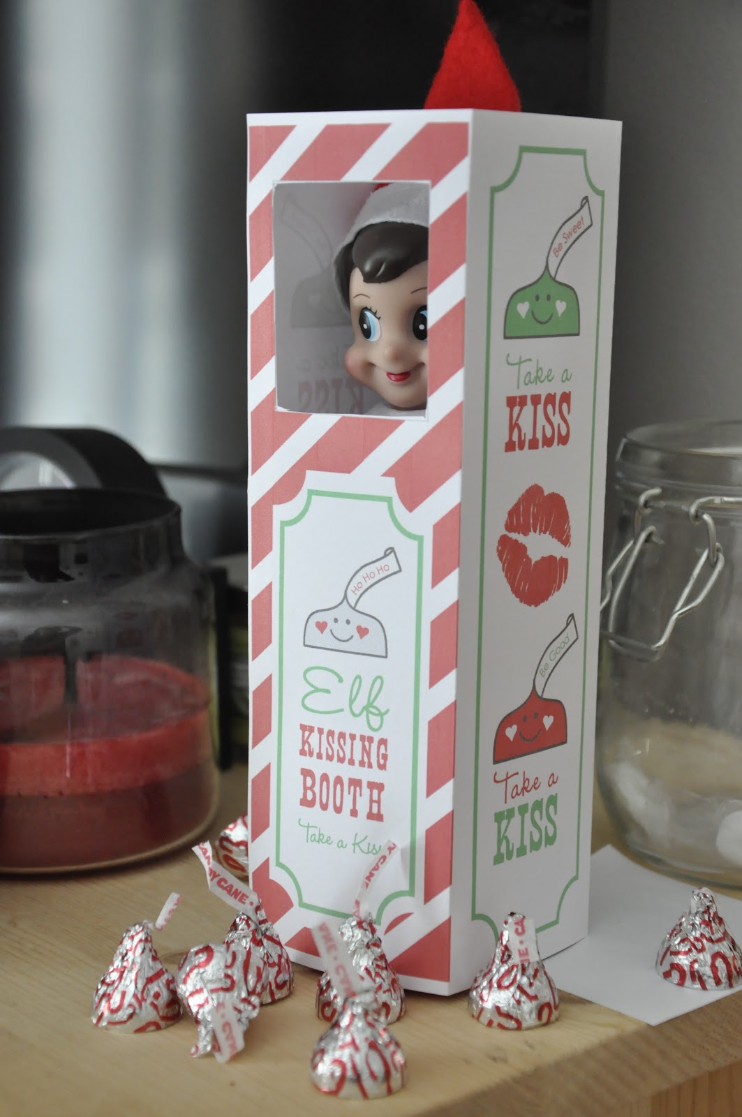 A few chocolate kisses sprinkled around a kissing booth. Everyone loved the chocolate!