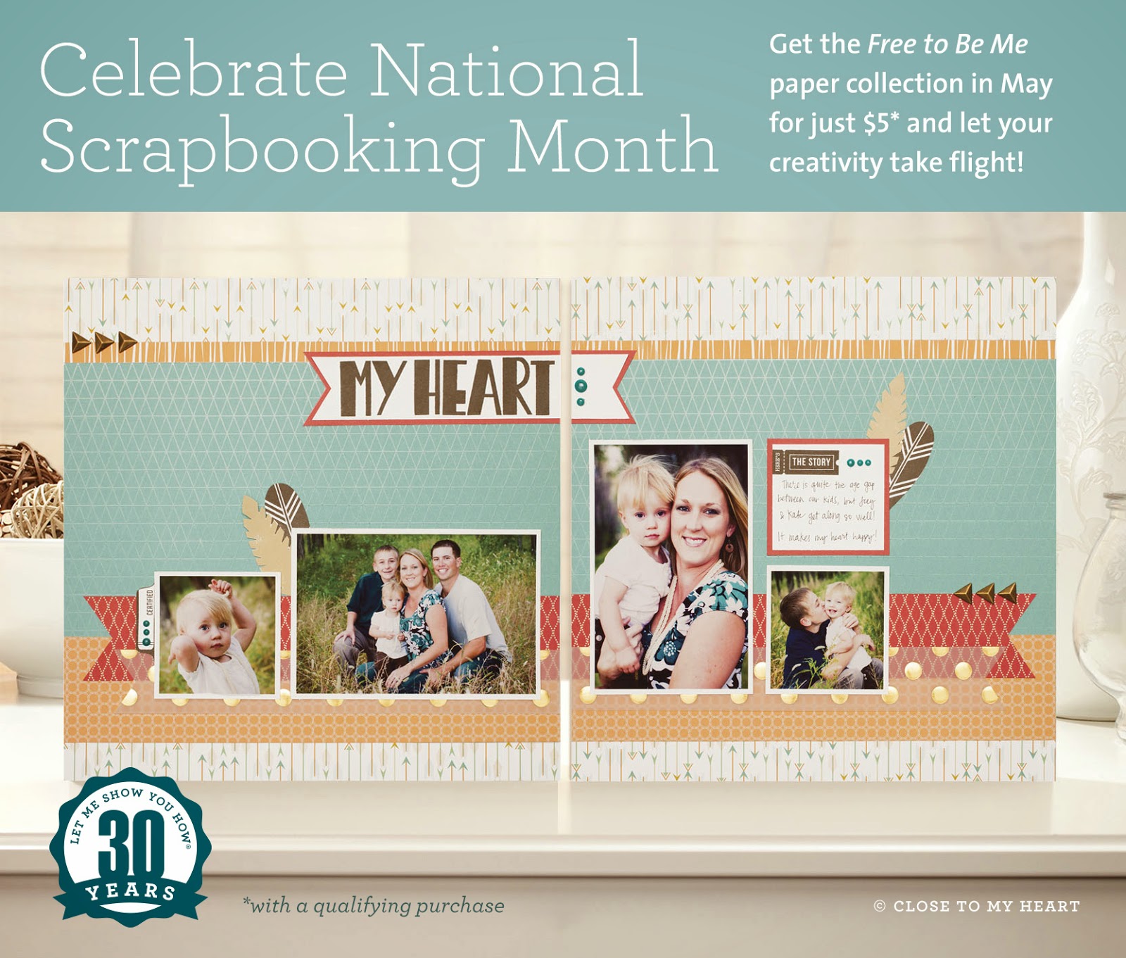 There is lots of exciting news to share about Close to my Heart this month. We are celebrating National Scrapbooking month! Yes a whole month. There is a great Stamp of the Month called You`ve Got A Friend. How cute is that. It is just $5 with any order of $50 or more from my website, www.ChrisRobertson.CTMH.com.