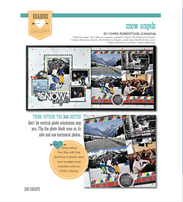 So I just gotta say- it never gets tired to see a layout in a publication. There is a new on-line publication put together by the staff at Scrapbook Generation. It is called “Create”. The first issue is live today. Here is the link to browse through the beautiful publication.