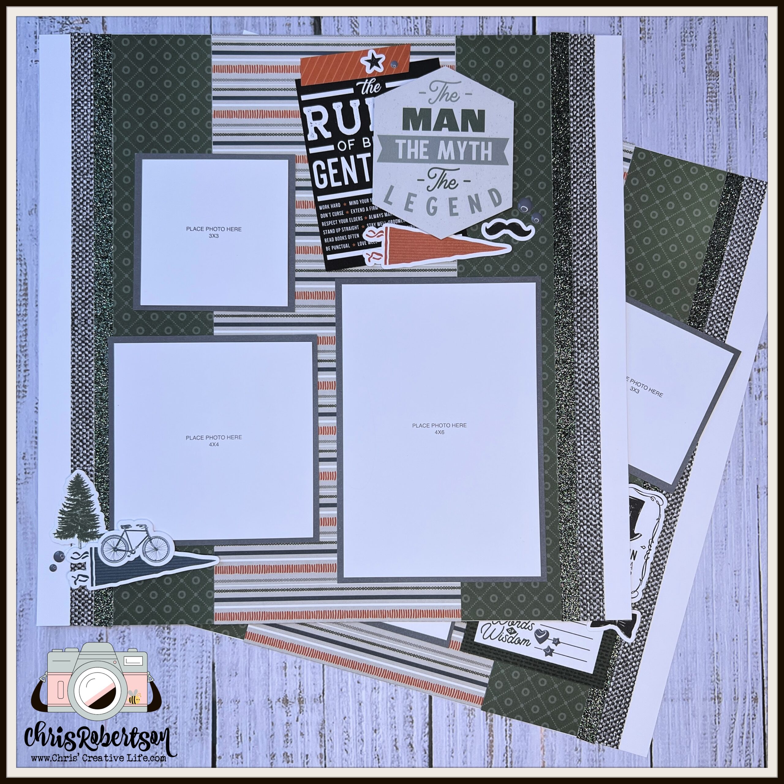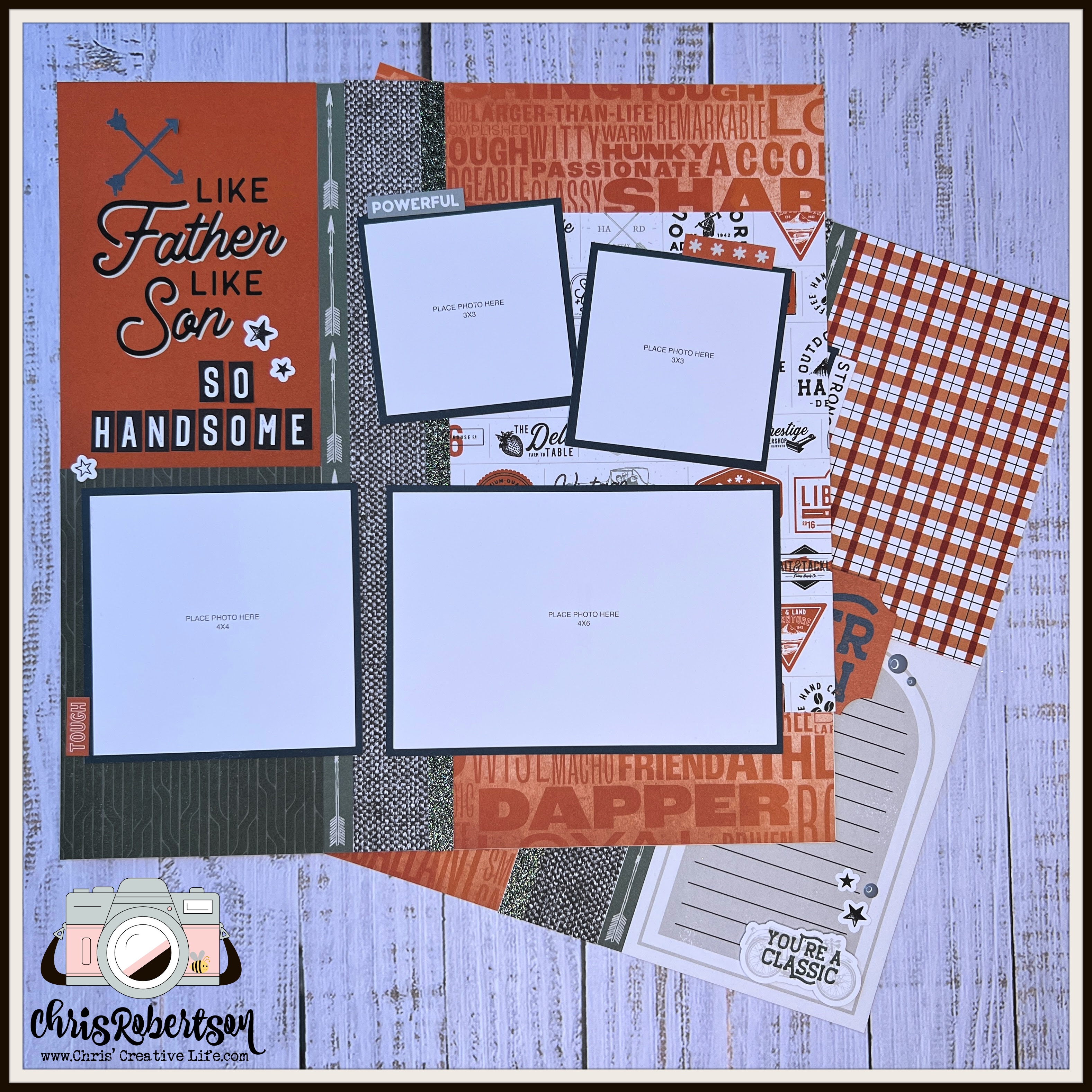 The supply list for the Hey Handsome Scrapbooking Workshop-