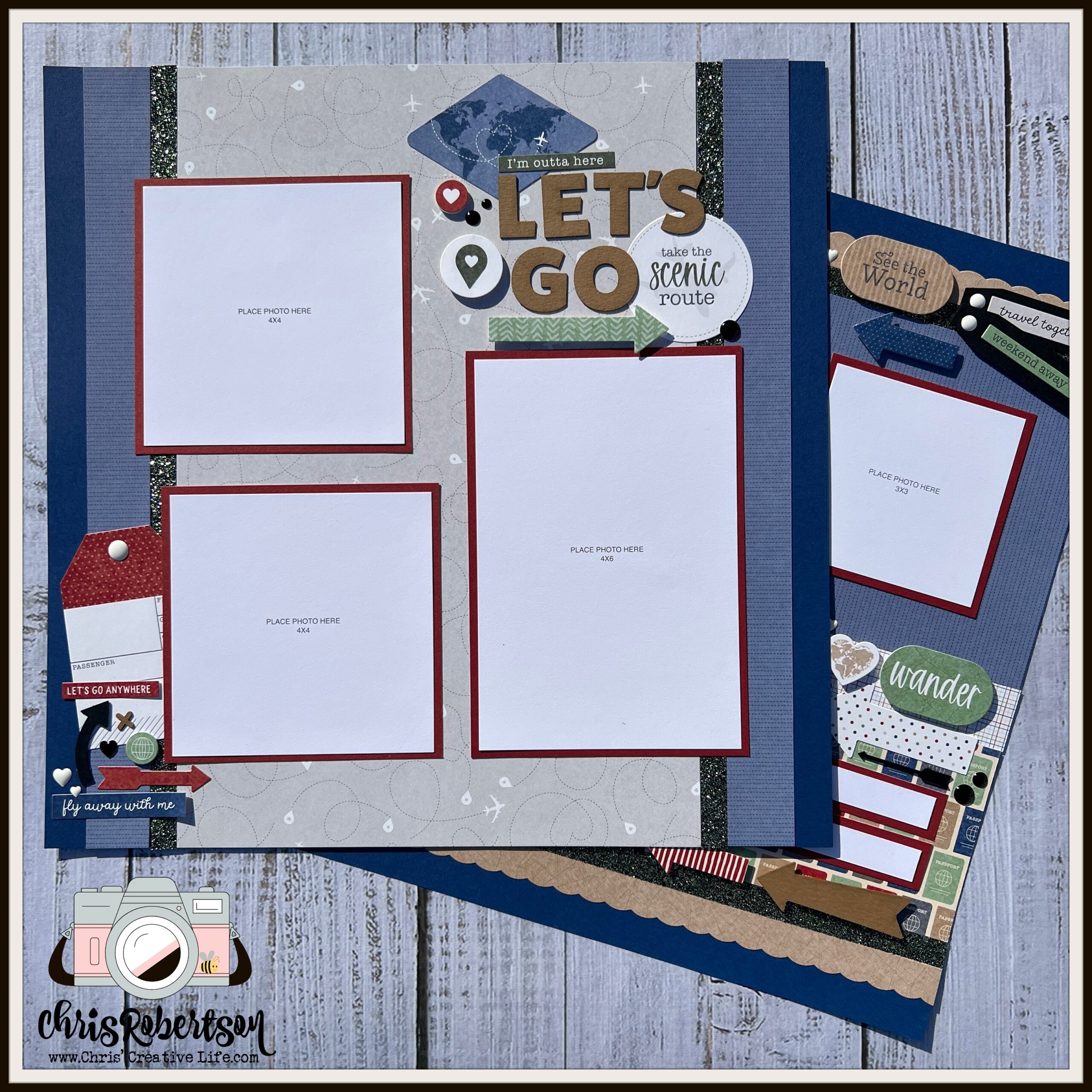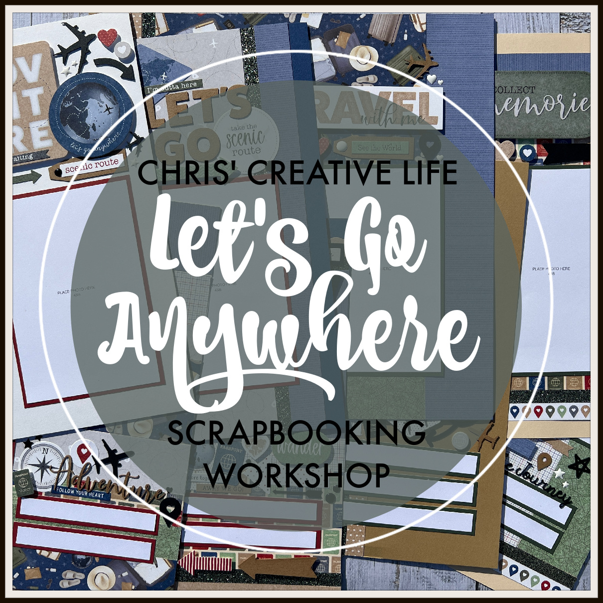 The supply list for Let’s Go Anywhere Scrapbooking Workshop: