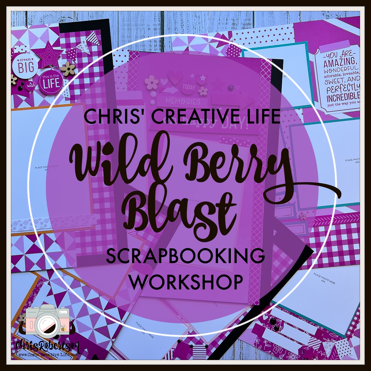 The supply list for the Wild Berry Blast Scrapbooking Workshop-
