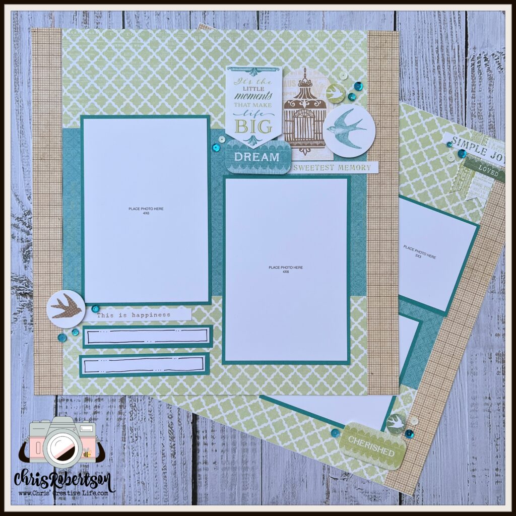 The workshop creates- (6) 12×12 scrapbook pages.