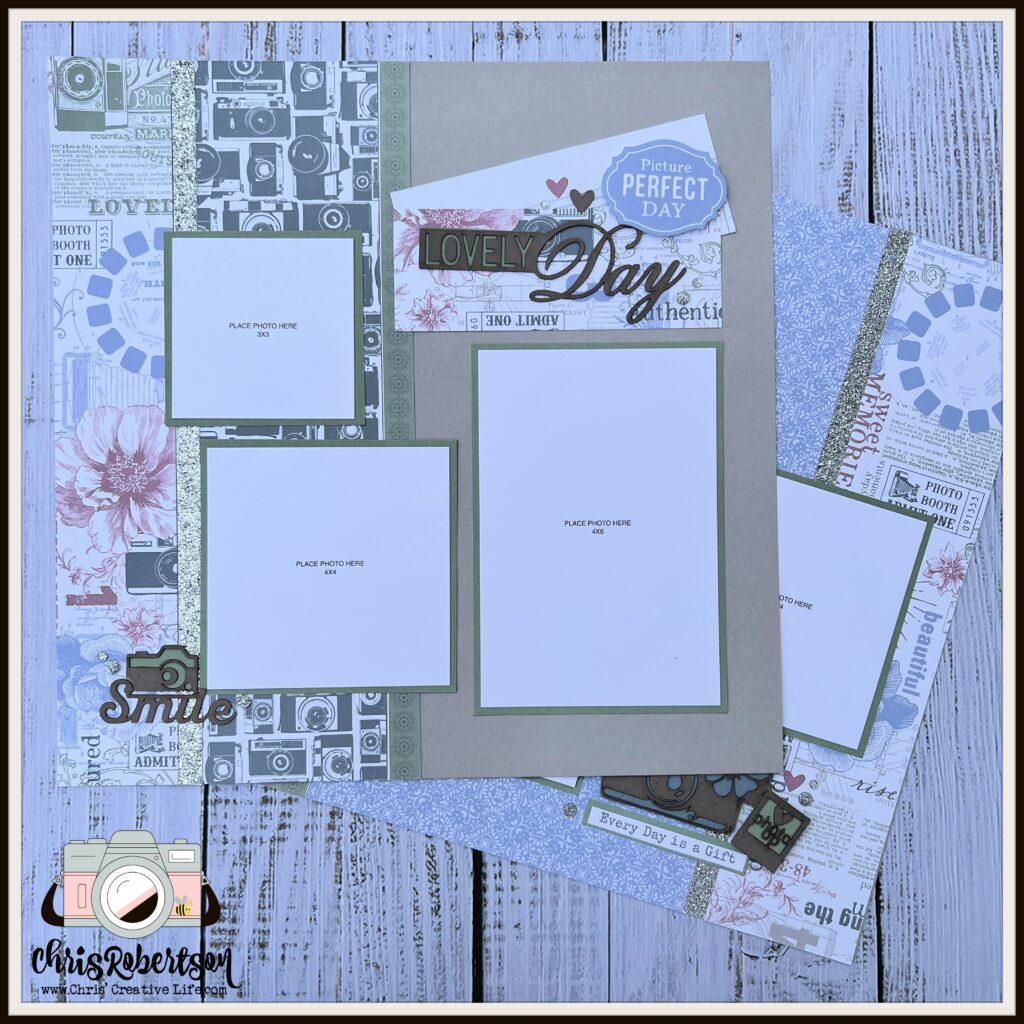 The workshop creates- (8) 12×12 scrapbook pages.