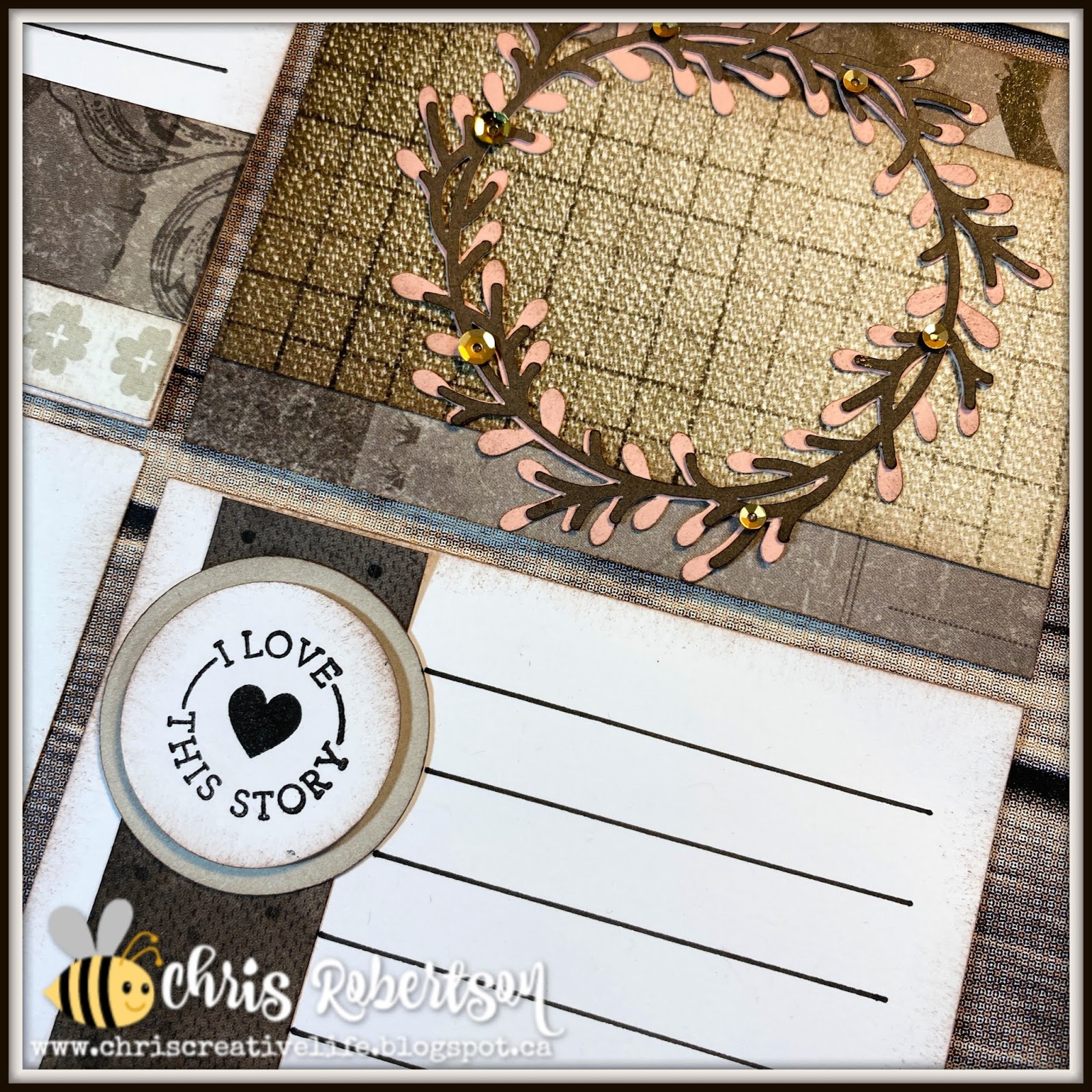 This concept is different that my ‘regular’ scrapbooking workshop, this one is based of the Storyteller concept as presented by Stacy Julian with Close to My Heart. There is a How-to book to support the program. You can find all the details about the book (here). I highly recommend this How-to book as a learning aid for expanding everyone ability to document your story and memories. Let’s take a look at what happen when I merged these two collections together.